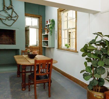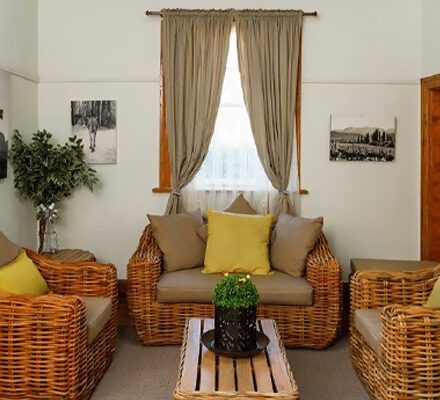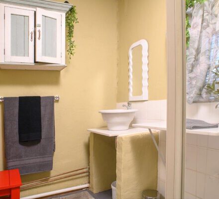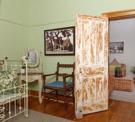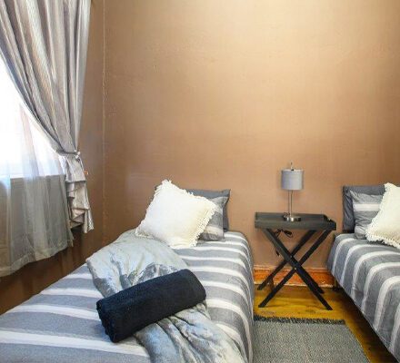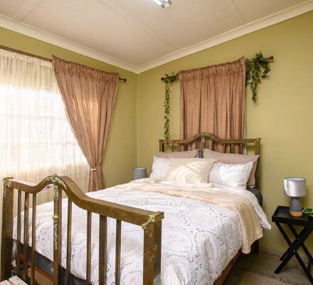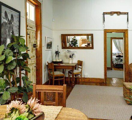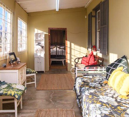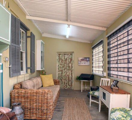 Walking Distance to everywhere in town. Fully equipped kitchen/living room/Dining Room 1 Bathroom share with shower/Patio with extra Day Bed. Outside braai under roof, farm vibe/environment with chickens/sheep/donkeys. Fruit Orchard all natural environment with cement dam – fish.